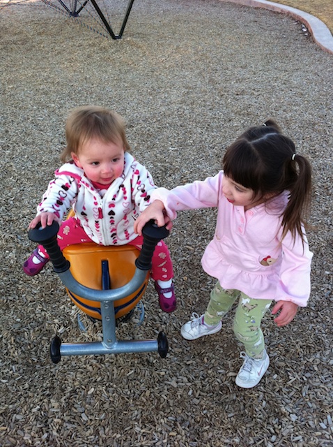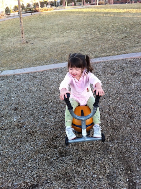 Here’s a park adventure.  This was in Colorado, not Texas!  Autumn really likes to play on these.