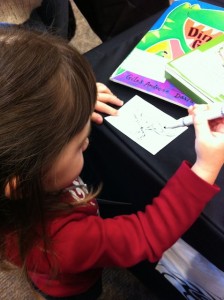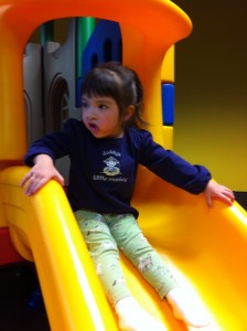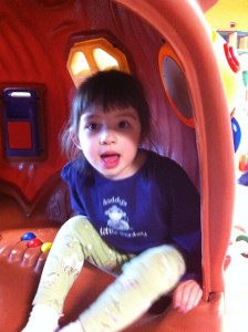 Auntie Cait and I were playing a game where we were calling each other wrong names. She called me Kala and asked if I needed to go shi-shi outside . (like Kala the dog does) I said yes, so we took my potty outside and I went!