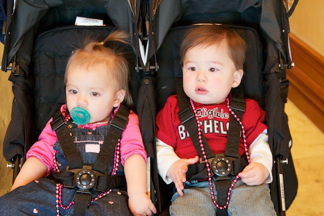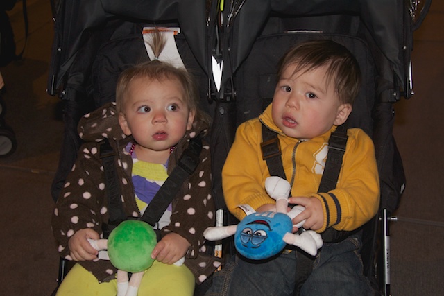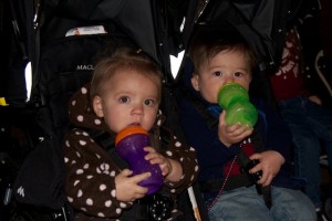 You wouldn’t believe how many people think Autumn and Ryland are twins, especially when they ride in the stroller together! On this adventure Auntie Cait and Jeff went to see the Blue Man Group, so Mommy was in charge of all of us. She had lots of help though! We loaded up and went the hotel Diane and Pony stayed at. Alicia and Allie came to help get us there.