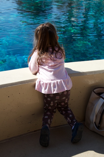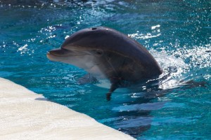The wall to the dolphin pool was so low, I really wanted to go swimming with them, but Mom said I couldn’t.