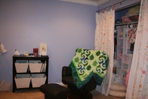 This is my glider chair that Mom and Dad use to put me to sleep. My bookshelf has books and toys and the monitor so you can hear me when I’m in here.