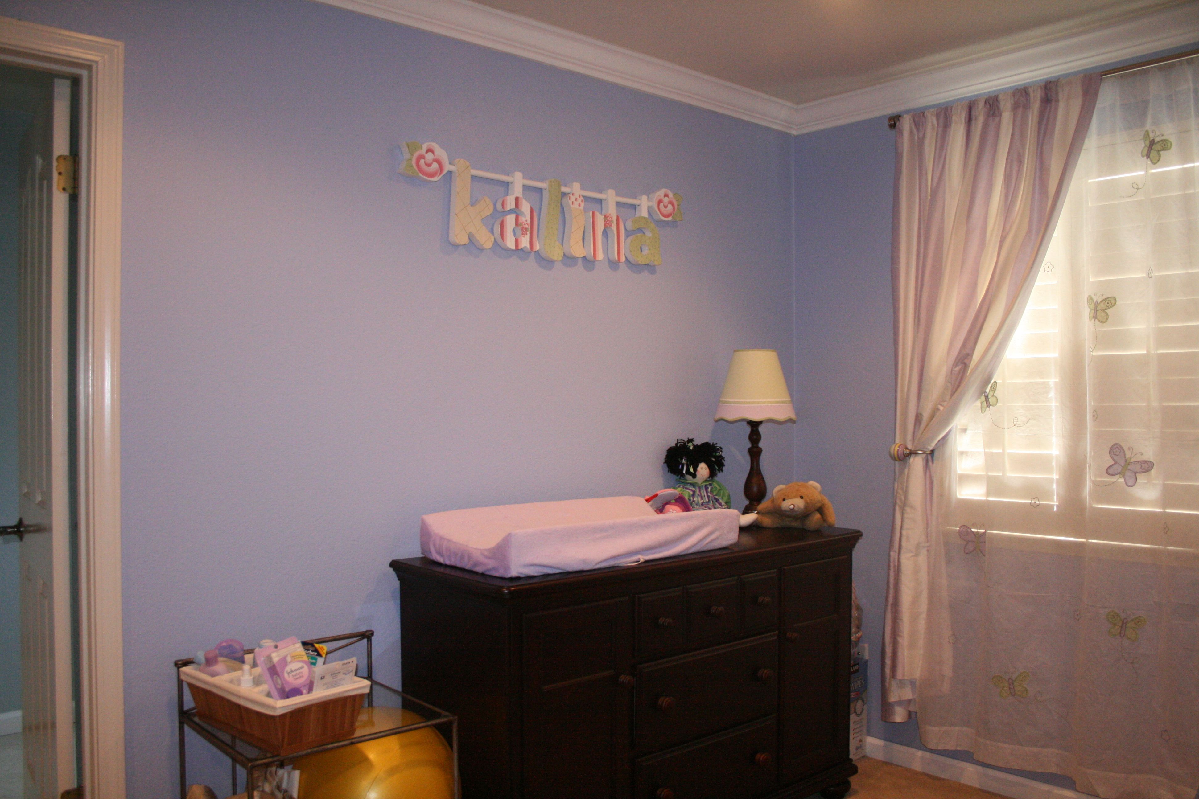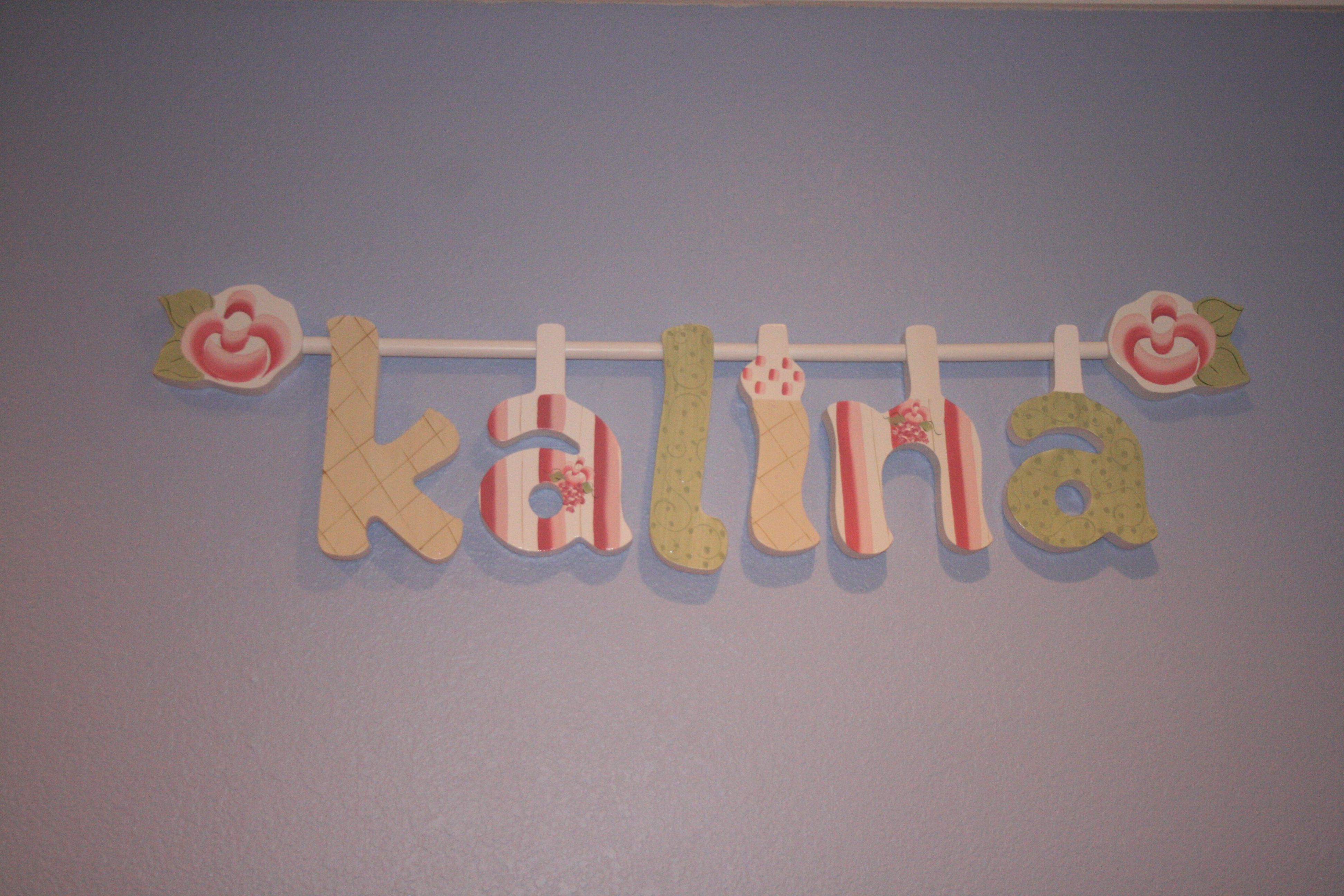See those letters on the wall? They make my name. Mom got them at a cool store in Los Altos.