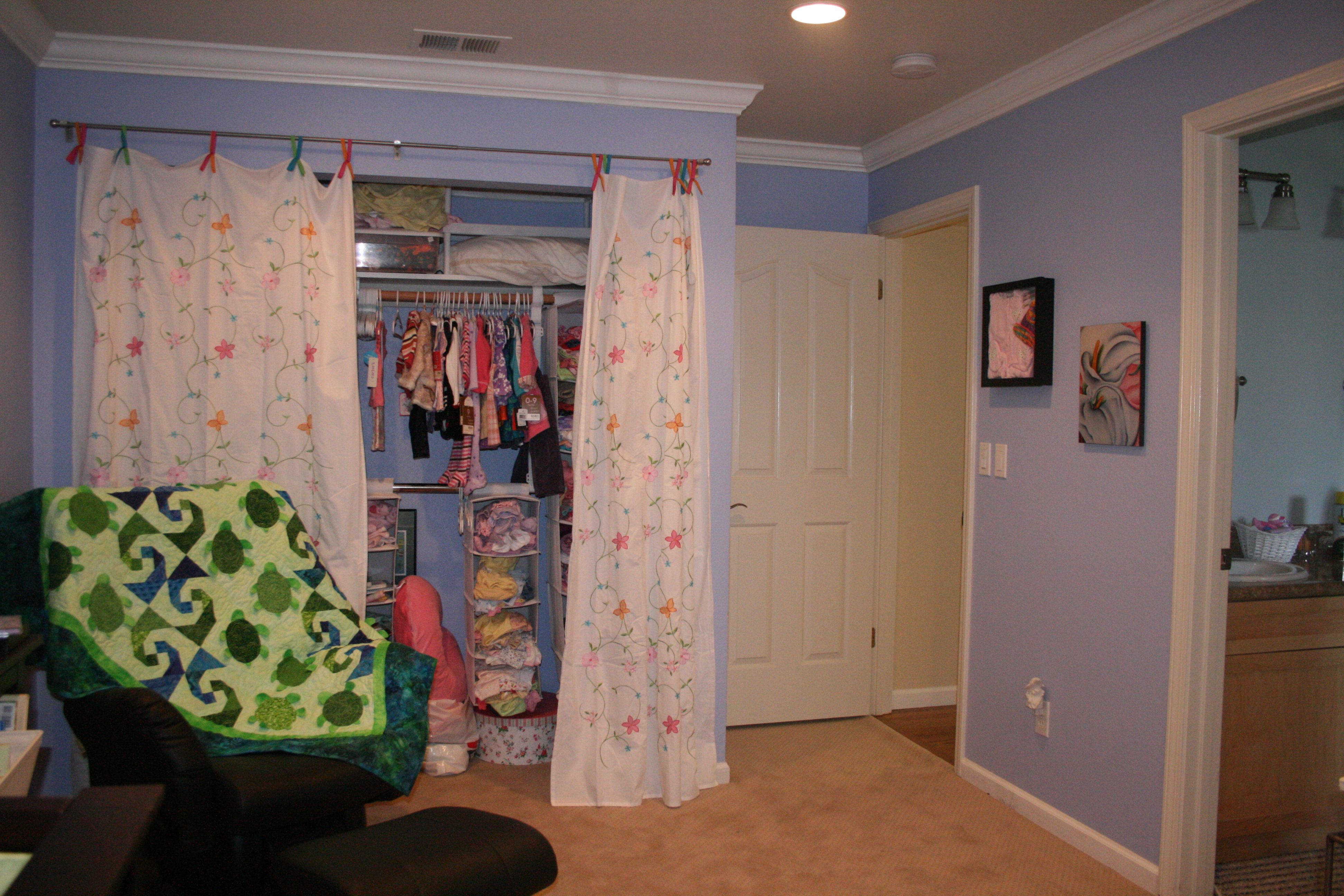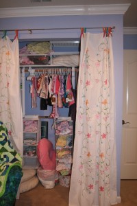 Can you see my closet? I’ve got flowers on the curtains that Mom is using for doors.