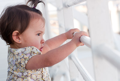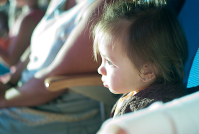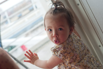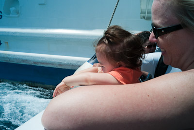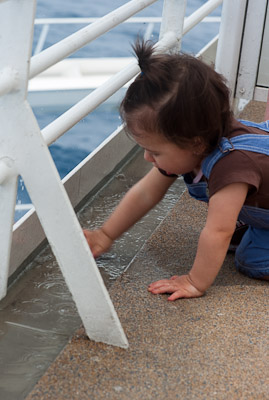 Waiting at the boat terminal to get on. We had a delay so I found a friend to play with.