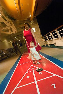 Shuffleboard! This game is great for practicing your walking, but even more fun when you discover the floor is all wet!