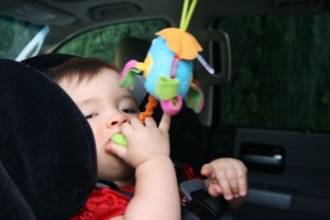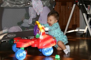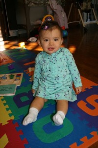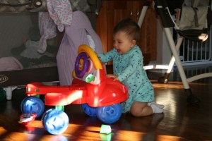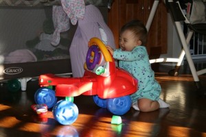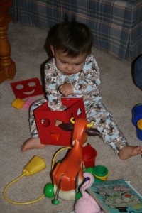 Tuesday night I flew to Denver with Mom and Dad for Thanksgiving. I did good on the airplane, no fits, just a little wiggly! Grandma picked me up at the airport and we went to her house. I was wide awake and wanted to play. I stayed up until 12:00 (Denver time), I wanted to keep playing but Mom and Dad made me go to bed. Did you know that people in Denver have their clocks 1 hour faster than at home? So really it was only 11:00pm. I kept trying to explain that I could still stay up but I guess Mom and Dad don’t understand the time change stuff! At grandma’s house she had some toys or me to play with. Mom says that she had the same red box that the shapes fit into when she was little. Auntie Devon and Sean were at the house too! It was Devon’s birthday so we had some cake.