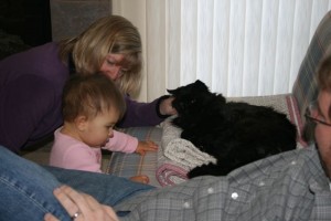 The next day I got a little braver and got closer to Gizmo, Auntie Devon’s cat. He’s fluffy and soft, and he doesn’t bark at me like Toby does.