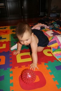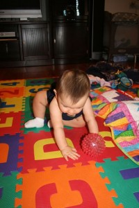 I’m much better now. Last night I went to play with uncle Howard and today Mom and I went out and about all day. By the way-I’m really working on my crawling, but standing up is so much better!
