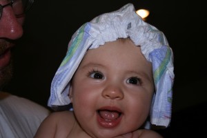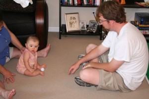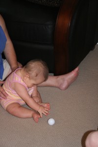 Playing is soooo much fun. I have all kinds of toys at my house. Mom calls them stations, because she puts me at different ones when I get tired of the one I’m at. There’s the play mat, high chair, rocking chair, bouncing chair, blocks, playpen, TV, and now I’ve discovered balls!