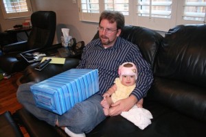Later on we went up to Great Grandma’s house for dinner. Dad wanted to practice hitting some golf balls at the short range place so that he can beat Uncle Mark when he plays with him this weekend. I drank some water from a big people cup. I’m still trying to figure out how to get water out of my sippy cup.