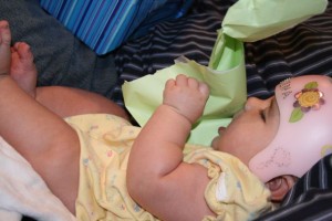 Today Mom and I went to Trader Joe’s to pick up a few things. She needed both hands so she put me in the front of the big metal noisy thing. I usually ride in the big basket in my carseat, but today I practiced sitting up in the front. I did pretty good-didn’t tip over or anything.