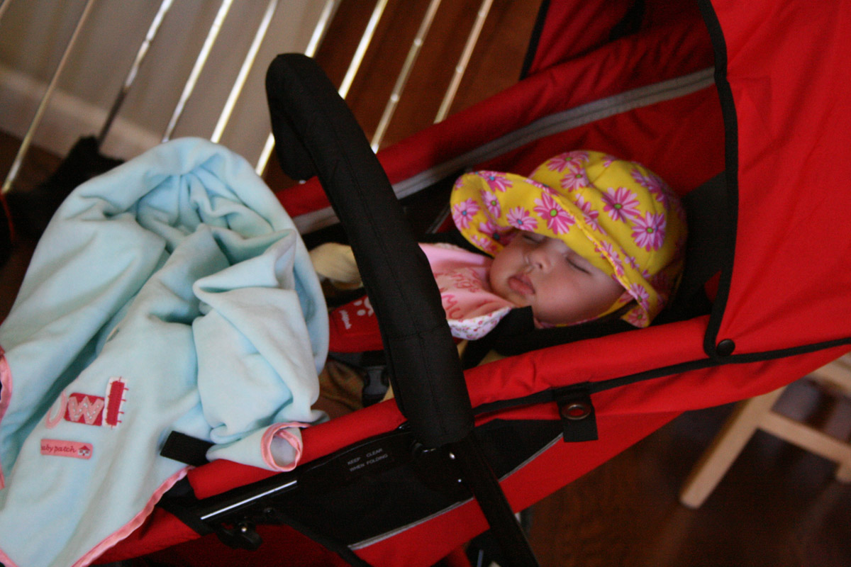 Here’s one of my new hats, and I even got to go on a walk with Grandpa.