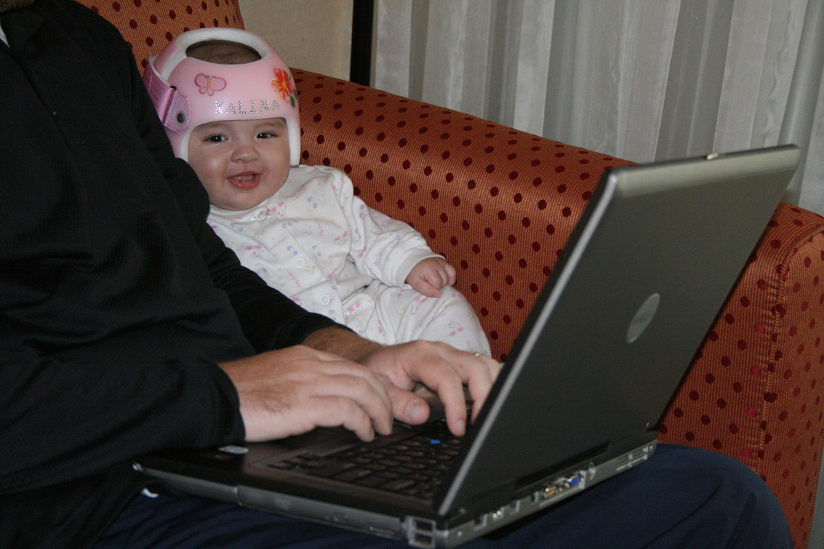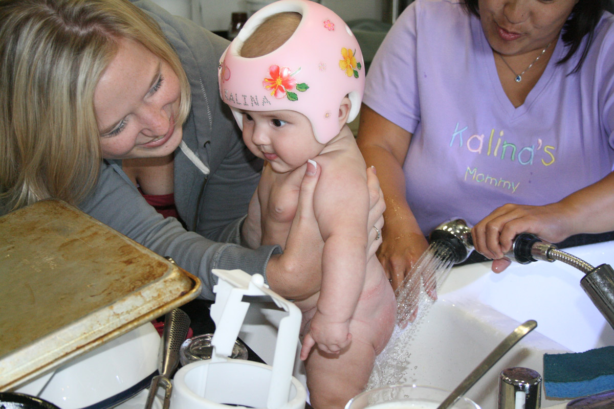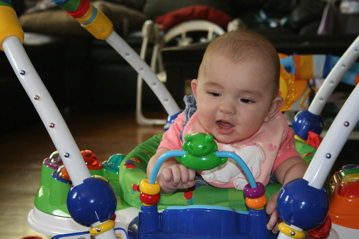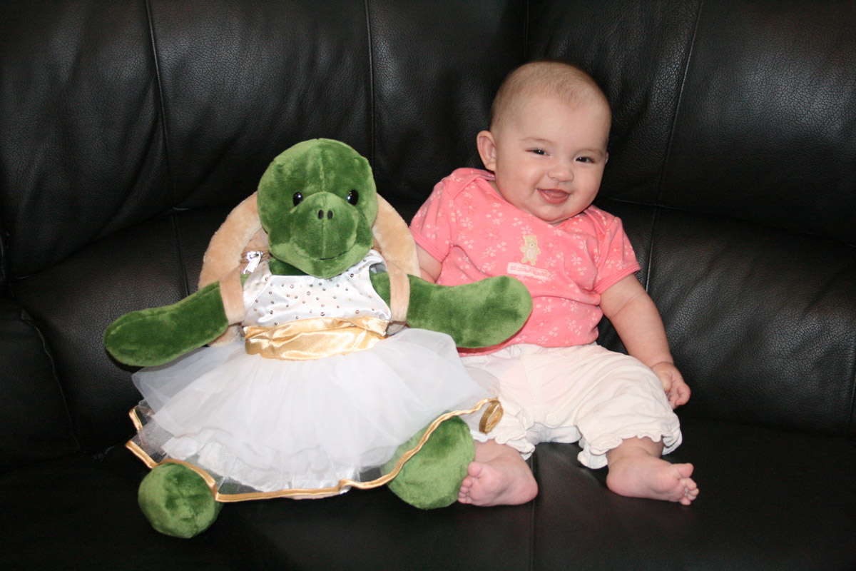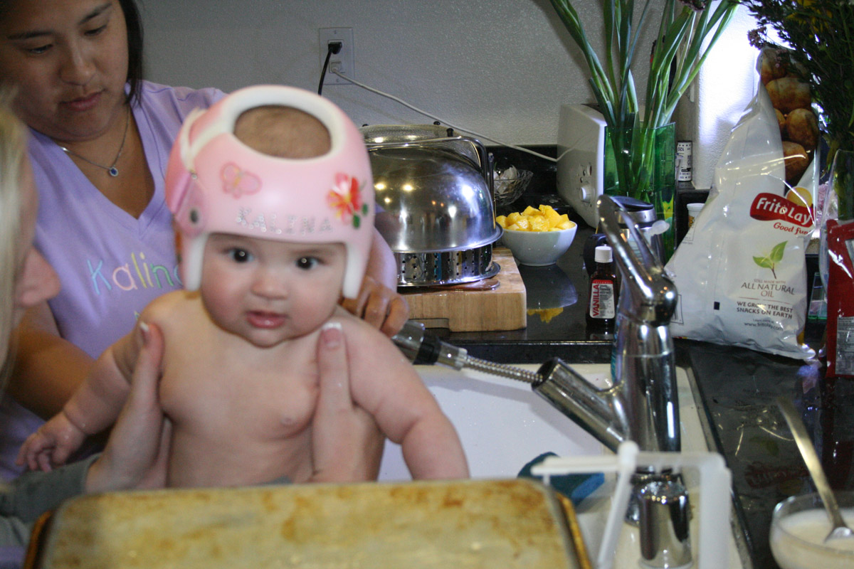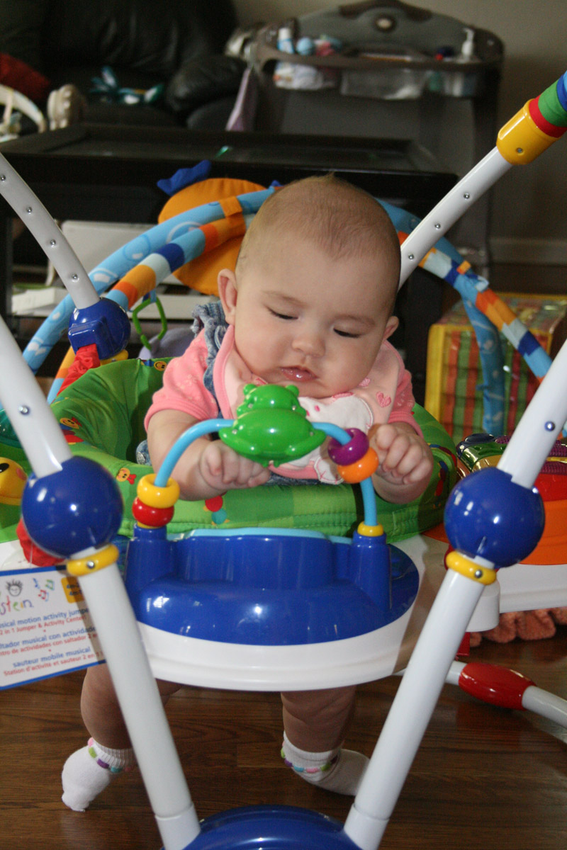 Friday night Caitlin and I played “Super Hero Kalina”. I had a cape and flew all around. (Well, until Auntie Caitlin’s arms got tired!) Then I barfed a little on their counter-Oops!
