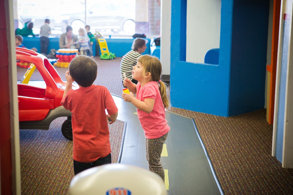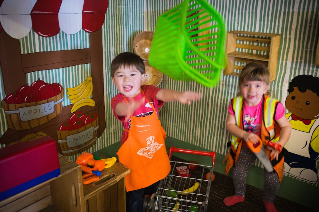 This was Imagination Avenue. We got to dress up and pretend to do all kinds of things! Dr. Autumn is checking out Ryland.