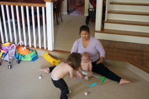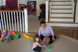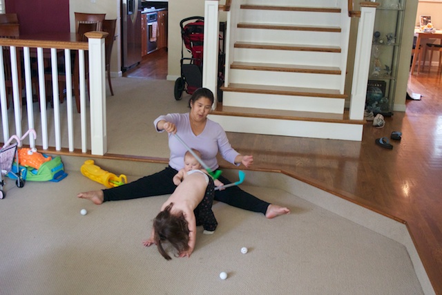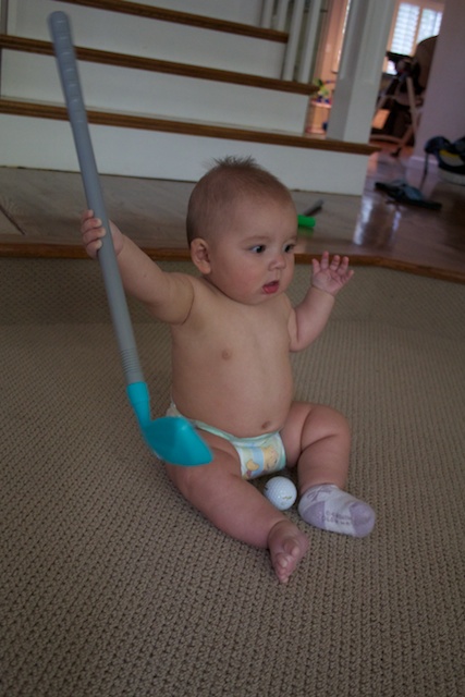 I decided to show Autumn how to use the golf clubs. She did a pretty good job, and only hit Mom once.