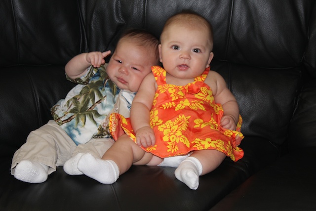 This was Autumn and Ryland at the end of April. They were wearing their aloha clothes for Uncle Cris’s funeral.