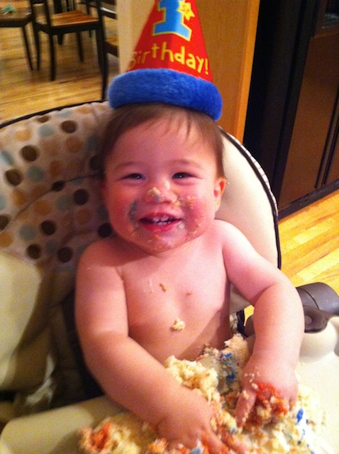 Mom and Jeff weren’t supposed to wear cake, but uncle Jeffrey still smashed some in Mommy’s face!