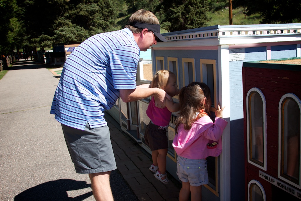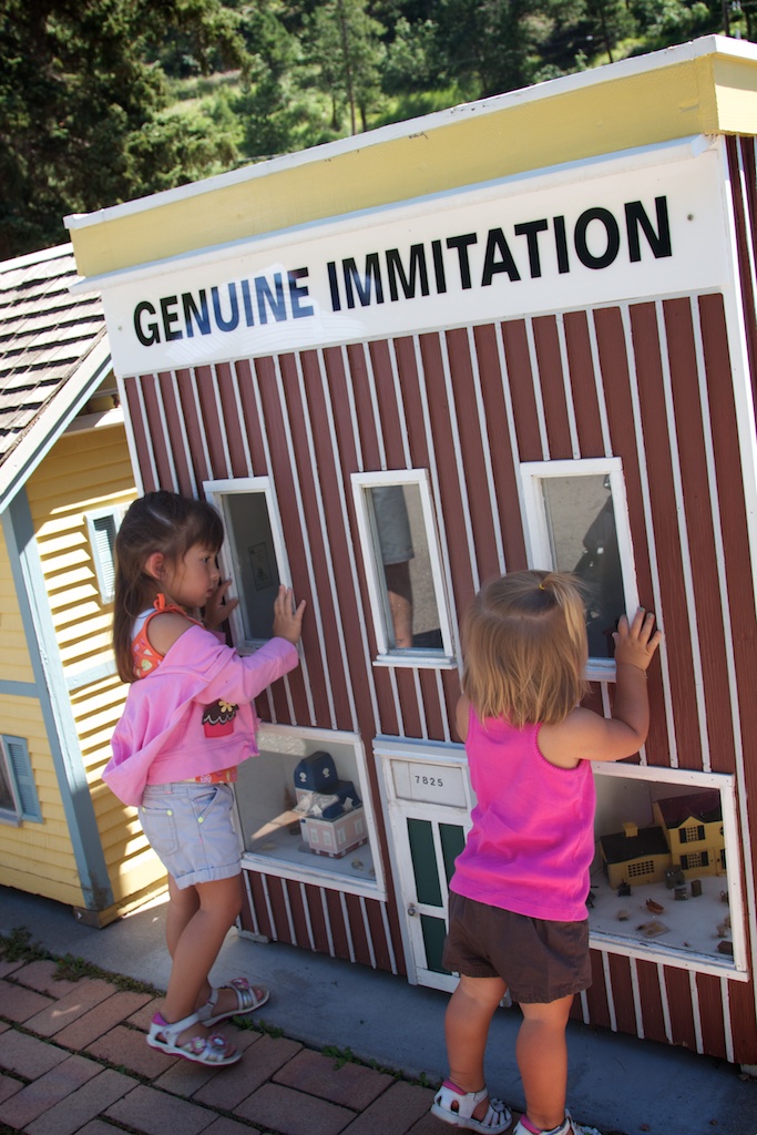 Yesterday we went to Tiny Town to see what it’s all about. Guess what! It’s a place that is like a tiny town! There are all kinds of little buildings to look at and a train you can ride.