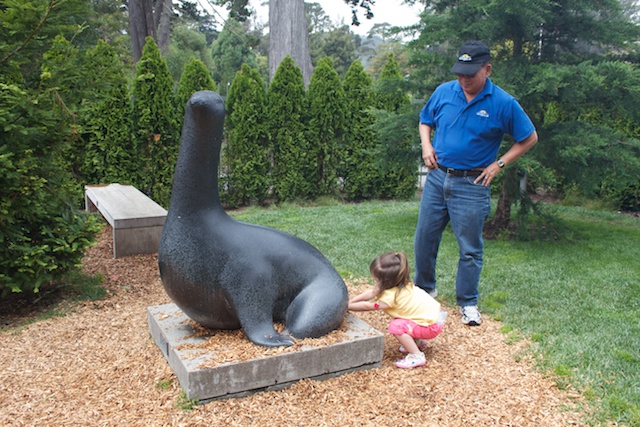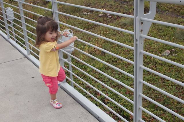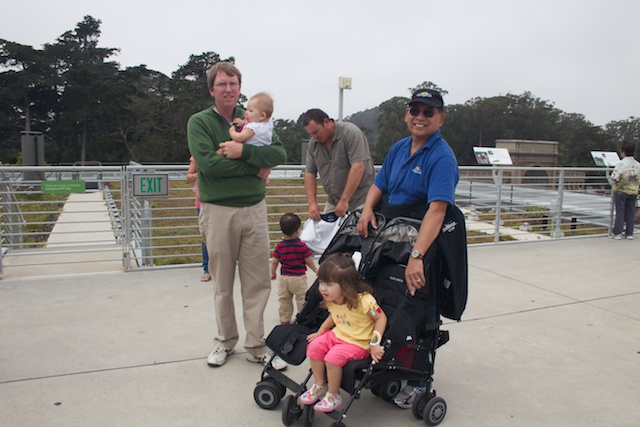 This weekend was really busy. Uncle Jeffrey says Mommy must be doing a “California Bucket List” whatever that means! Saturday Grandpa went with us to the California Academy of Science. Daddy says that it’s the coolest museum he’s ever been to. Mommy didn’t take many pictures because we were too busy looking at everything. These pictures are on the “living roof”. They made it so that the roof has solar panels, and plants that can live and grow on the roof. That way scientists can learn about plants right on the building. Inside there was a tropical aquariums, California coast aquariums, and this self enclosed rain forest dome. Inside there it was like walking in a real rain forest (without the snakes hanging around) as you walked to the canopy there were birds and butterflies flying around the space.