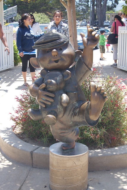 Today we went down to Monterey to place at the Dennis the Menace playground and go to the beach. Mom wanted to go to the wharf to get some clam chowder but us kids were to wiped out to make another stop. Guess she’ll have to wait for another trip. We only stayed at the park for a short time because I really wanted to go to the beach. Mom forgot my shovel and bucket so Dad stopped at the store and bought this bucket full of chips and stuff. It even had a shovel!