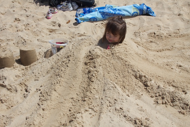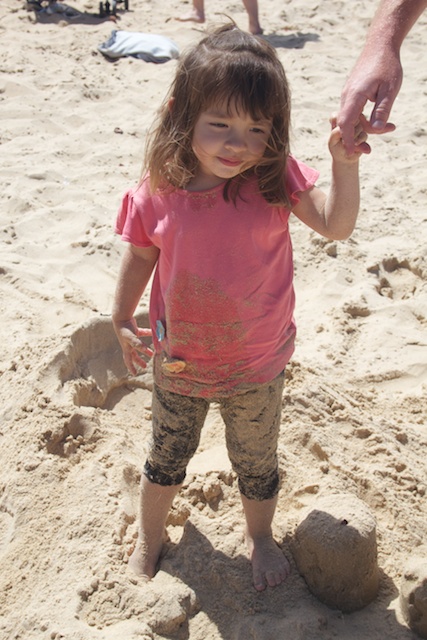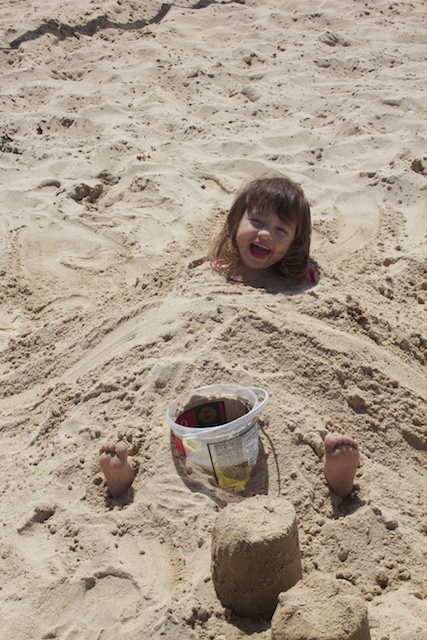 After awhile I started to put sand on my legs. Mommy helped me get all covered up!